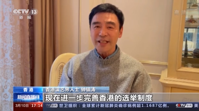 香港知名演艺界人士 钟镇涛:现在进一步完善香港的选举制度,让香港社会的民生、经济、文化等等各层面的问题都得到更好的改善,促进香港更长远的健康发展。