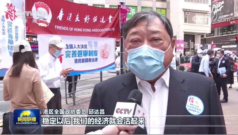 港区全国政协委员 邱达昌:这个对香港未来的稳定肯定是好事,稳定以后,我们的经济就会活起来,活起来,民生就会好。