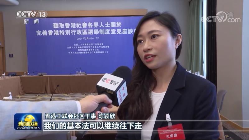 香港工联会社区干事 陈颖欣:第一点我们就是坚定地支持全国人大的《决定》;第二点就是让我们香港的“一国两制”,我们的基本法可以继续往下走,也是可以行稳致远的,走下来还是要靠我们自己的努力去乘风破浪,我们年轻人希望可以出一份力。