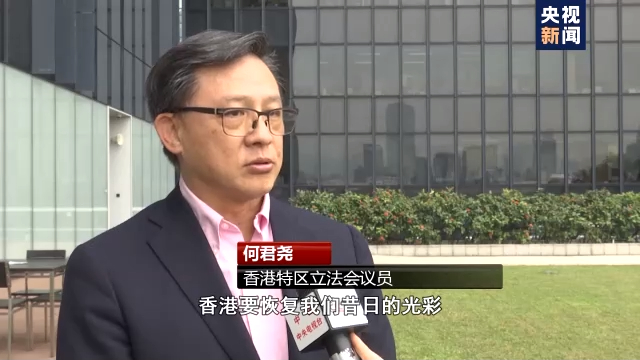 香港特区立法会议员 何君尧:对于香港肯定是可以拨乱反正,令到香港可以恢复我们应有的秩序。所以我感觉就是现在我们经过大乱,现在有大治,就是香港要恢复我们昔日的光彩,就是搞好我们的经济就是我们的共同的想法。