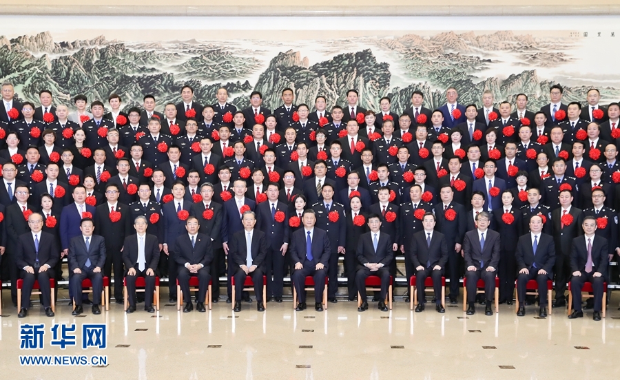 3月29日,党和国家领导人习近平、王沪宁、赵乐际等在北京会见全国扫黑除恶专项斗争总结表彰大会代表。 (新华社记者 饶爱民 摄)