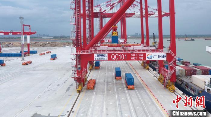 6月2日,在广州港南沙四期码头,岸边集装箱起重机按照信息系统自动发布的指令抓取船上的集装箱,自动放置在无人驾驶智能导引车上。无人驾驶智能导引车通过智能算法,自动规划路径,将集装箱运往堆场,轨道吊自动对位,自动抓取集装箱后放到指定位置。
