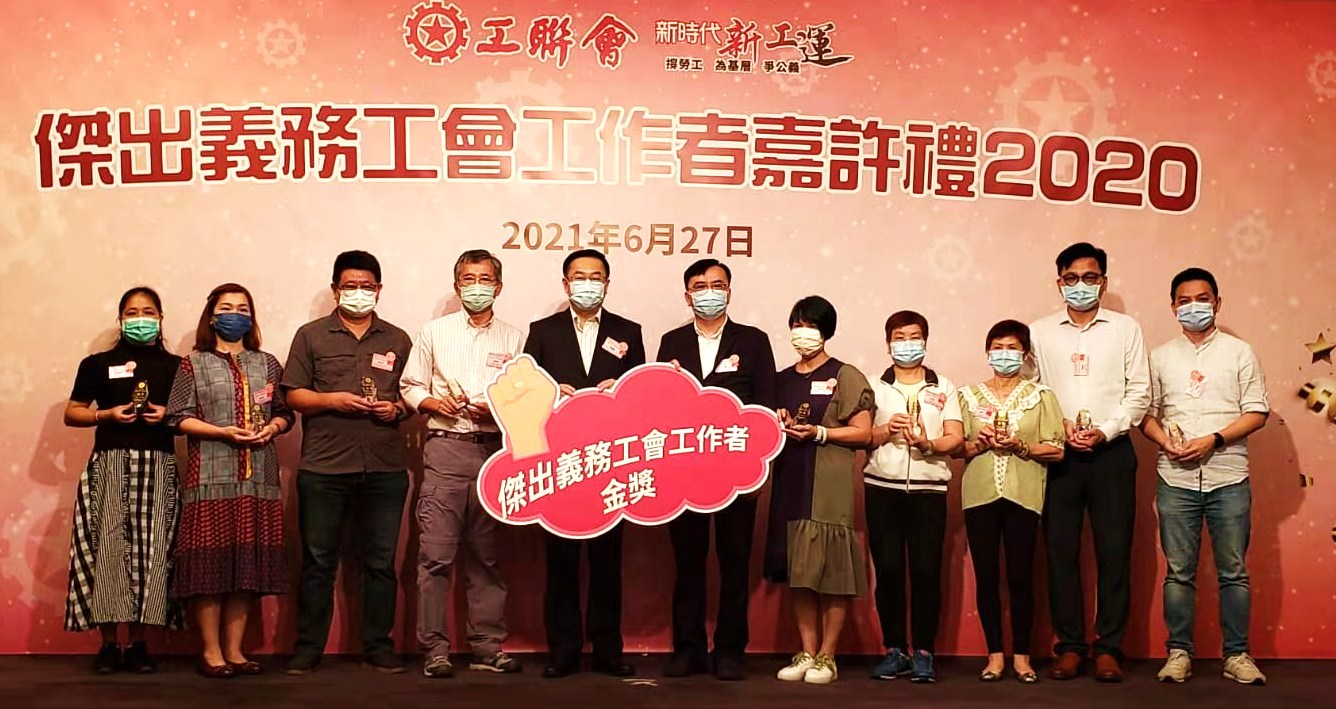 本网讯 6月27日,香港工联会举行杰出义务工会工作者嘉许礼2020。我办副主任何靖出席,并与香港特区政府民政事务局局长徐英伟、劳工及福利局副局长何启明等嘉宾共同主礼,为获奖者颁奖。