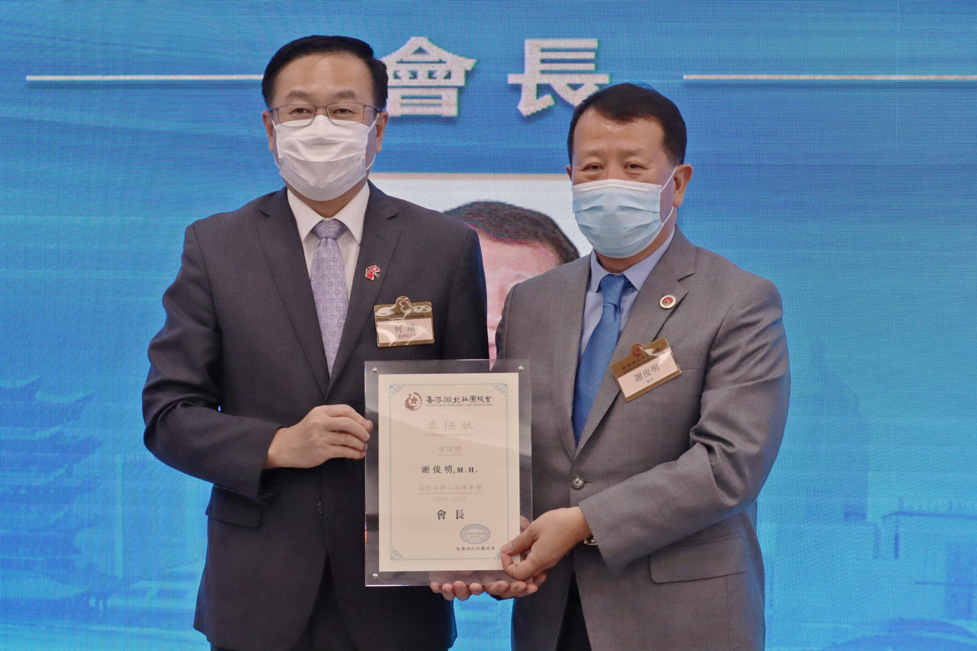 本网讯 香港湖北社团总会近日举办“庆祝建党100周年 香港回归祖国24周年 香港湖北社团总会第二届理事会就职典礼暨创会27周年庆典”。我办副主任何靖应邀在香港会场出席主礼,并为该会第二届理事会会长、荣誉会长颁发委任状。活动采取线上线下结合的形式,分别在深圳、香港设会场,香港中联办、香港特区政府、湖北省有关领导及香港湖北社团总会会员代表等560余人参加。