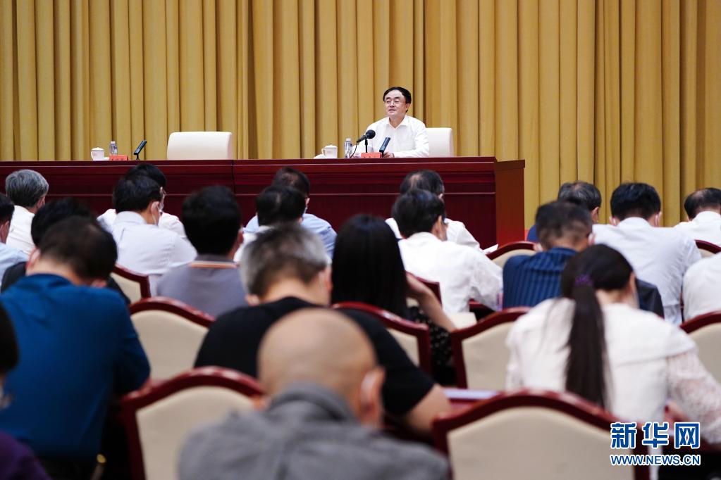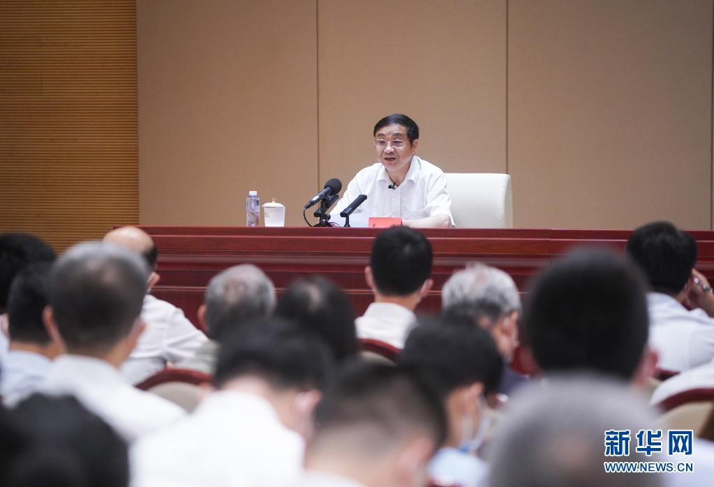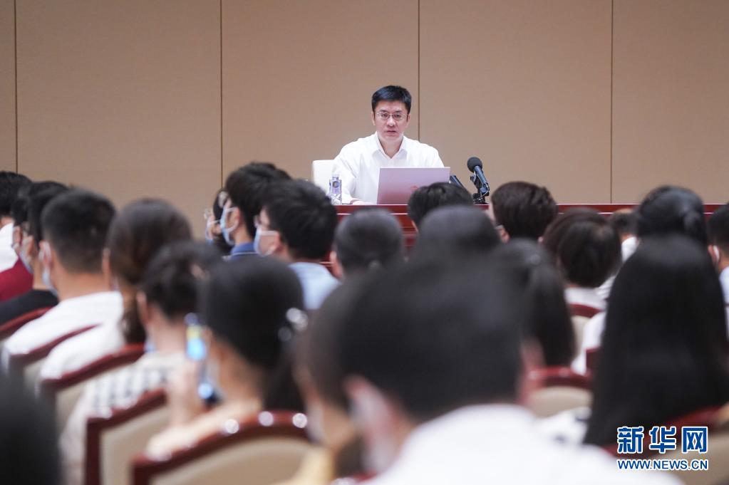 7月17日,党史学习教育中央宣讲团成员李捷在第七场报告会上作宣讲报告。(新华社记者 陈晔华 摄)