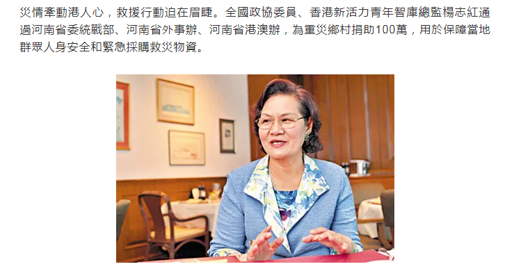 港区全国政协委员杨志红捐款100万元