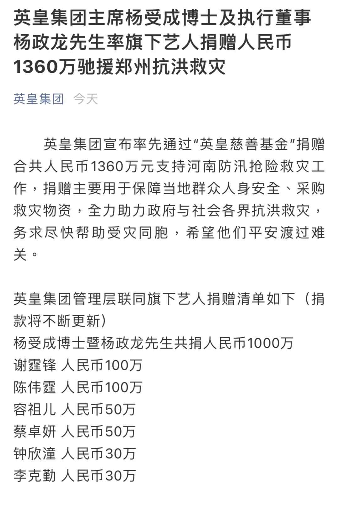 英皇集团捐款1360万元