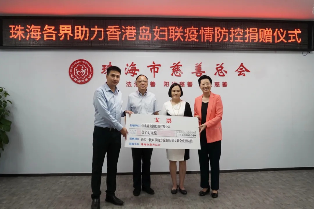 “小口罩”传递“大爱心”。2021年7月24日上午,珠海各界助力香港岛妇女联会疫情防控捐赠仪式在珠海市慈善总会举行,珠海市副市长阎武出席仪式并讲话,珠海市委、市政府、市妇联、市慈善总会等发起部门及佳兆业集团和格力地产等爱心捐赠企业参加。