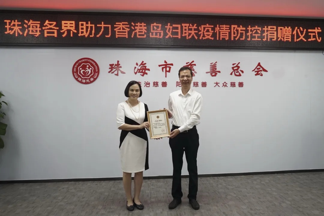 在副市长阎武,二级巡视员陈锦粮见证下,市妇联主席玄阳、市慈善总会常务副会长王棱汸接受了爱心企业的捐赠,副市长阎武和市委二级巡视员陈锦粮向爱心企业颁发捐赠证书。爱心企业表示会继续关注社会公益事业,为助力湾区建设,构建和谐文明社会,为珠海建设新时代现代化国际化经济特区贡献力量。