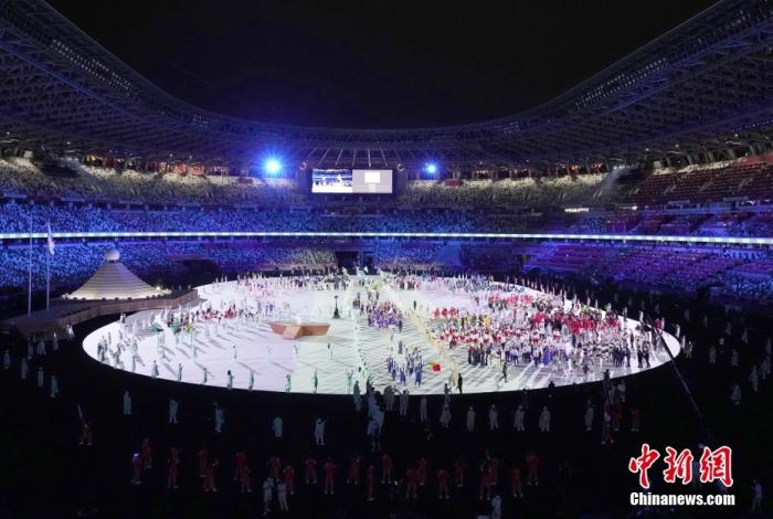 7月23日,第32届夏季奥林匹克运动会开幕式在日本东京新国立竞技场举行。图为各体育代表团入场。 (中新社记者 韩海丹 摄)