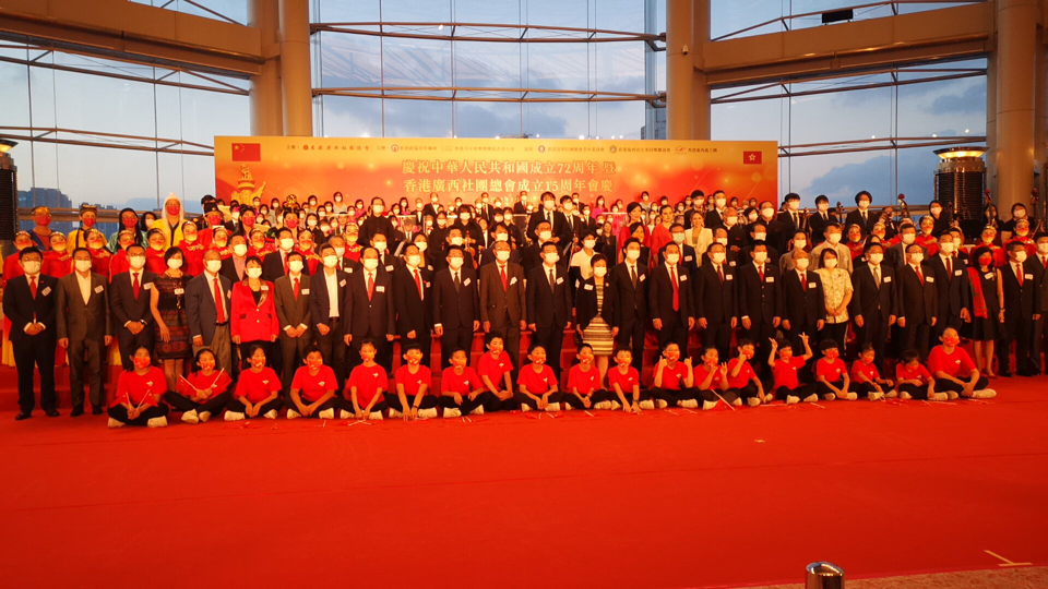 本网讯 9月25日,香港广西社团总会举行庆祝中华人民共和国成立72周年暨总会成立15周年会庆活动。香港中联办副主任何靖应邀出席,并与香港特区署理行政长官陈茂波共同主礼。活动现场举行了庆祝国庆、会庆亮灯仪式,并进行了精彩纷呈的文艺表演。香港各界160多名代表人士参加活动。