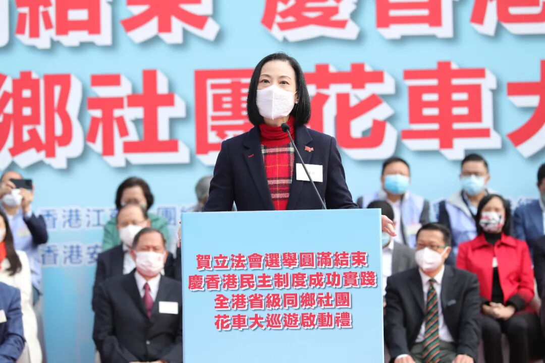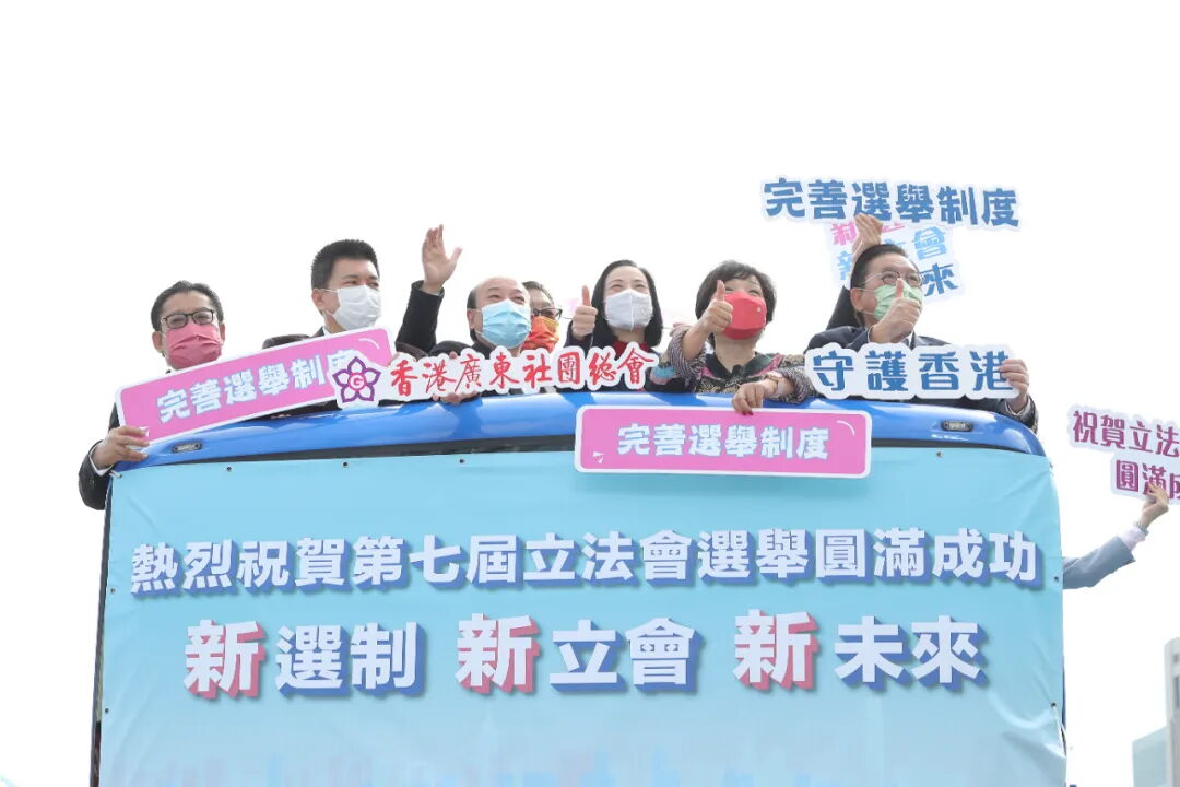 为庆祝香港特区第七届立法会选举圆满结束,香港26个省级同乡社团12月23日联合举行“贺立法会选举圆满结束 庆香港民主制度成功实践 全港省级同乡社团花车大巡游”活动。多名出席活动的香港特区第七届立法会新当选议员,乘坐花车巡游各区,与市民共庆。