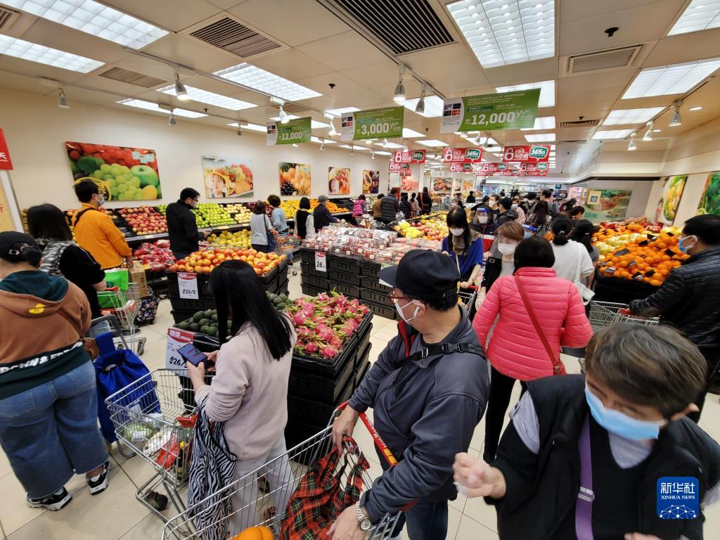 3月1日,市民在香港红磡一家超市采购蔬菜。(新华社记者 王申 摄)