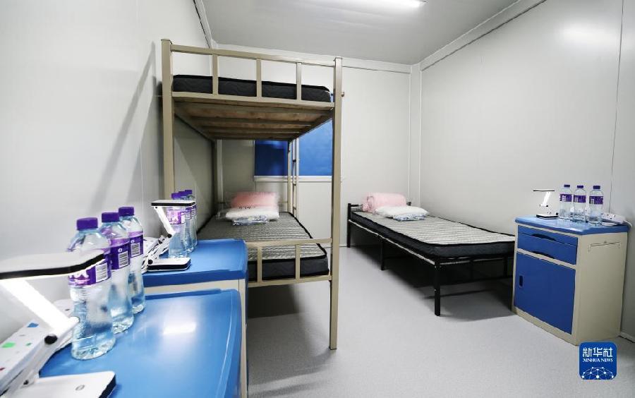 这是3月8日拍摄的香港新田方舱医院隔离房间。(新华社发)