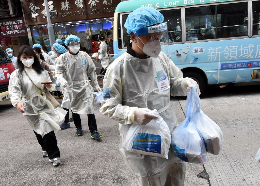 当天,行政长官林郑月娥在署理民政事务局局长陈积志陪同下,到访港岛中西区一幢“三无大厦”(指无业主立案法团、其他业主组织及物业管理公司),逐家逐户派发“防疫服务包”,并呼吁居民用好服务包内的快速抗原测试包,在4月8日至10日每天和家人一起做自我检测,识别感染个案,尽早稳控疫情。