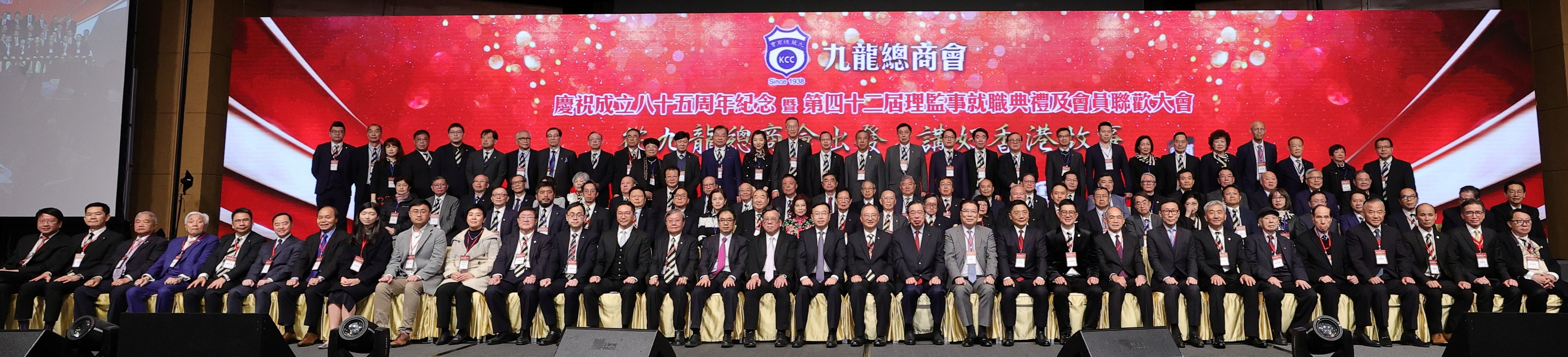 本网讯 12月18日,香港九龙总商会举办成立八十五周年纪念暨第四十二届理监事就职典礼。中央政府驻港联络办副主任何靖、香港立法会主席梁君彦、香港特区政府商务及经贸发展局局长丘应桦等共同主礼,香港社会各界嘉宾700余人出席。