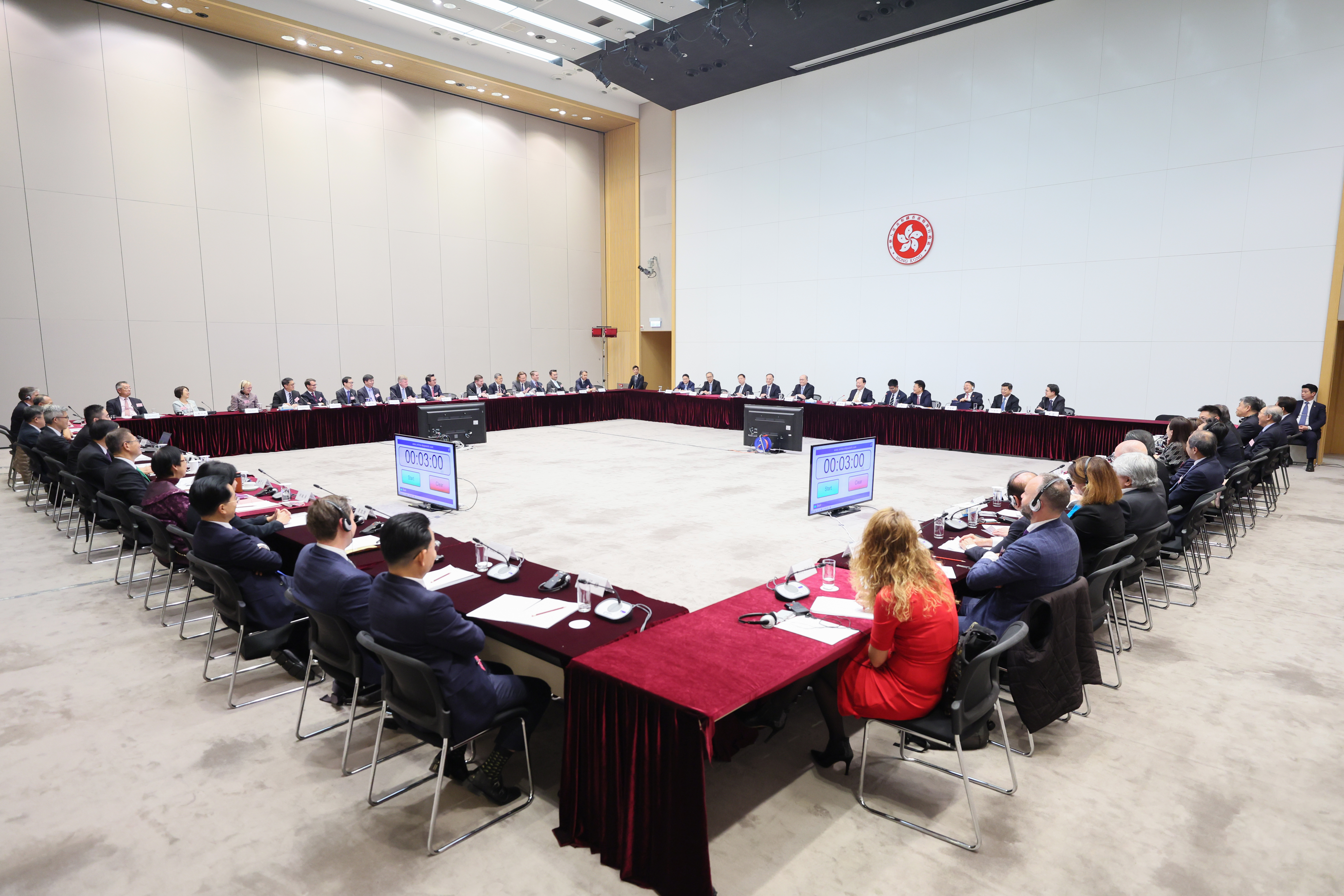 2月26日下午,中央港澳工作办公室主任、国务院港澳事务办公室主任夏宝龙在香港特区政府总部与香港本地及外国商会代表座谈,就香港经济发展进行交流。
