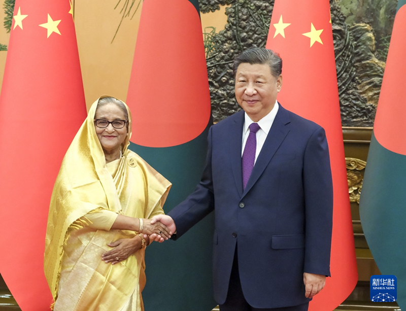 习近平指出,中国和孟加拉国是相知相交的友好近邻,两国友好往来绵延千年。建交以来,两国始终相互尊重、相互支持,平等相待、合作共赢,树立了国与国之间尤其是“全球南方”国家间友好交往、互利合作的典范。中方珍惜中孟两国老一辈领导人缔造的深厚友谊,愿以明年建交50周年为契机,深化高质量共建“一带一路”,拓展各领域合作深度和广度,推动中孟全面战略合作伙伴关系行稳致远。