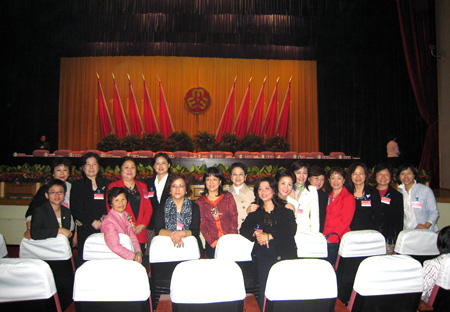 本网讯 10月31日至11月2日,18名香港特邀代表出席在穗召开的广州市妇女第十一次代表大会。来自广州各界的妇女代表及港澳特区、台湾地区的特邀代表共600余人与会。广东省委常委,广州市委书记、市人大常委会主任朱小丹到会讲话。