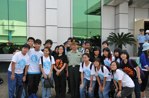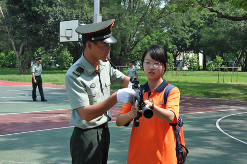 大学生体验先进武器装备 大学生们与部队首长合影