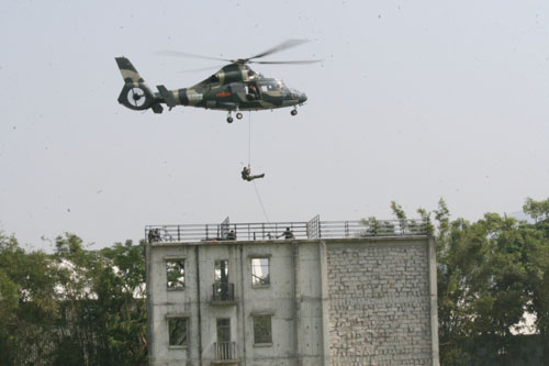 枪械团体操表演 特战队反恐作战演练
