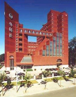 外语教学与研究出版社办公楼是一座集办公、商务、接待于一体的综合性建筑,由建设部建筑设计院、中旭建筑设计事务所共同设计。工程分为两期建设,一期竣工于1997年10月,二期竣工于1999年6月。在建筑设计上,建筑师考虑用建筑造型与空间语言来处理与特定城市环境的关系,并着重用东西方文化的双重建筑语言来表现外研社在中西方文化交流中的地位与功能特点。二期建筑在保留原有结构的限制中创造了新的空间形态,设计中对建筑的景观价值与人文价值的考虑并重,在建筑语汇上与一期协调一致,并在建筑的外饰面和内装修上做进一步的推敲,使二者成为一个既和谐统一又互有特色的完整的建筑艺术作品。