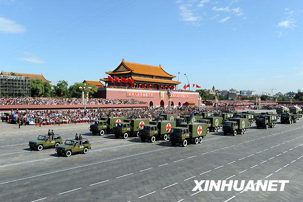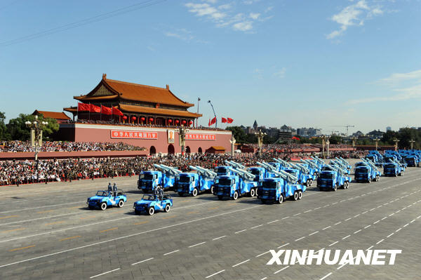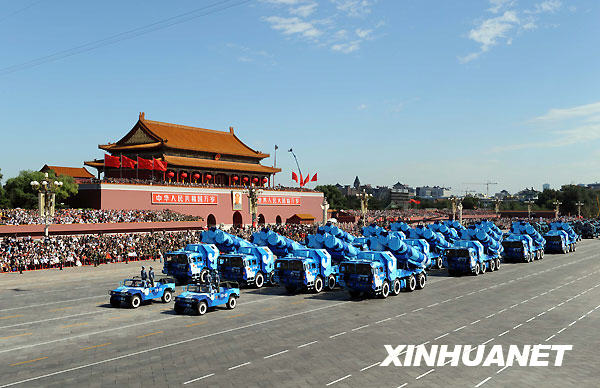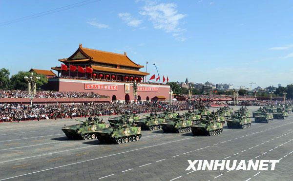 胡锦涛主席检阅受阅部队 三军仪仗队通过检阅 女兵方队通过检阅 坦克第一方队通过检阅 坦克第二方队通过检阅 履带步战车方队通过检阅 海军反舰导弹方队通过检阅 海军岸舰导弹方队通过检阅 某新型中远程地地常规导弹方队通过检阅 陆基巡航导弹方队通过检阅 核导弹方队通过检阅 通信兵方队通过检阅 后勤装备方队通过检阅 领队机梯队通过检阅 歼轰机梯队通过检阅