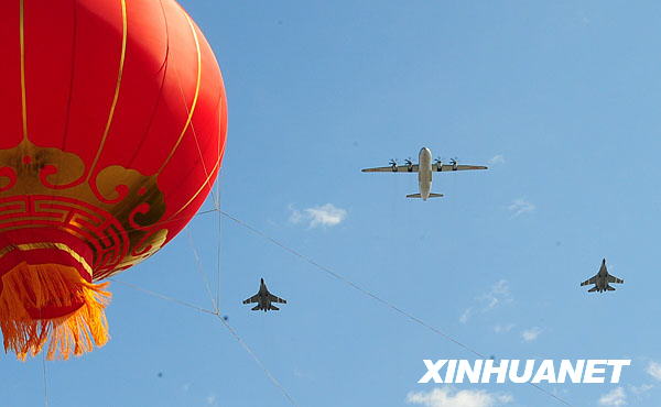 体形庞大的轰-6H,标志着“中国制造”迈入第三代的歼-10,以及距离地面仅250米的直升机群……12个空中梯队以楔队队形、“品”字形、三角形等各种队形飞过时,巨大的轰鸣声在天地间回响。