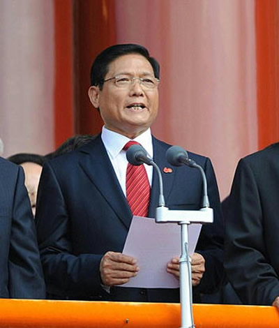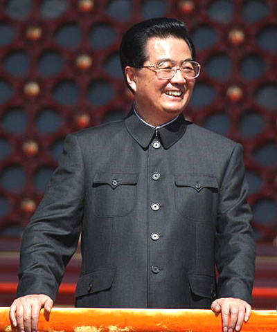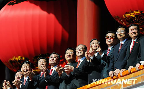 中共中央总书记、国家主席、中央军委主席胡锦涛在天安门城楼上。