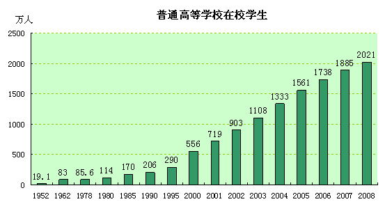 城市教育服务水平持续提升。以高等教育为例,2008年我国地级及以上城市(不包括市辖县)普通高等学校1908个,普通高等学校在校学生人数达2021万人,分别比1978年增长2.2倍和22.6倍,比1952年分别增长8.5倍和104.8倍,我国城市教育水平不断提高,为我国社会主义市场经济发展和现代化建设提供了强大的智力支持。