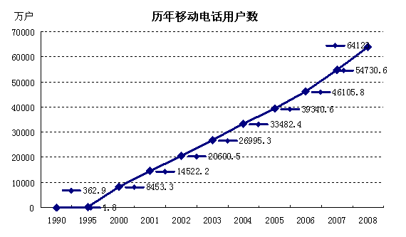 移动通信能力飞速发展。1988年到1997年的10年间,我国经历了移动通信发展的第一个高峰期,移动交换机容量从不到3万户猛增到2585.7万户,10年间增长860倍。1998年到2007年的10年间,移动通信继续保持快速发展态势,移动交换机容量新增80789.4万户,增长17.2倍;到2007年底,移动电话交换机容量达到8.5亿户,从1988年起年均增长71.6%;移动长途业务电路达到145.83万个2M。