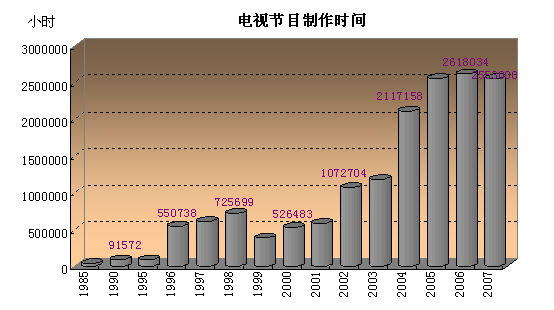 广播电视在调整中快速发展。随着经济社会发展,人们更倾向于有形有色的电视节目,淡化广播节目,促使电视节目的高速发展:电视节目制作从1985年的3.8万小时增加到1995年的38.4万小时,到2007年,电视节目制作高达255.3万小时,是1985年的67倍之多。2008年,我国已有广播电台257座,电视台277座,广播电视台2069座;有线电视用户16342万户,有线数字电视用户4503万户;广播节目综合人口覆盖率达到96%,电视节目综合人口覆盖率达到97%。
