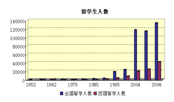 与国外教育交流加强。1978-2006年出国留学人员达90.4万,回国人员为22.2万,大大充实了国内的高素质人才队伍。1996年国家成立了留学基金委,国家每年选派优秀学生出国深造,1996—2008年全国共派出48605人,应回国37494人,实际回国36614人,回归率平均为97.65%,2008年回归率达98.34%。