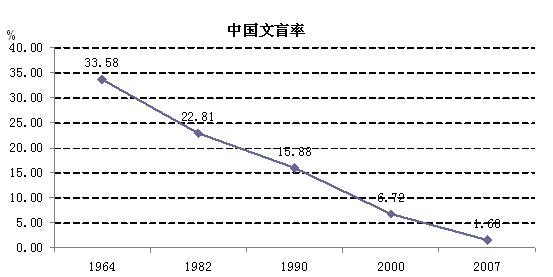 建国60年来,随着社会经济的迅速发展和对各类人才的需求日益加大,政府对教育的投入大量增加,人口的整体受教育水平显著提高。每十万人拥有的大专及以上人口1964年为416人,到2000年为3611人,同比增长7.68倍;高中和中专人口由1964年的1319人增加到11146人,同比增长7.45倍。人口文化素质的提高提升了整体劳动力素质。我国16岁及以上人口的平均受教育年限从1982年的5.3年提高到2007年的8.4年,提高了3.1年。其中男性从6.5年提高到9年,提高了2.5年;女性从4.1年提高到7.8年,提高了3.7年。