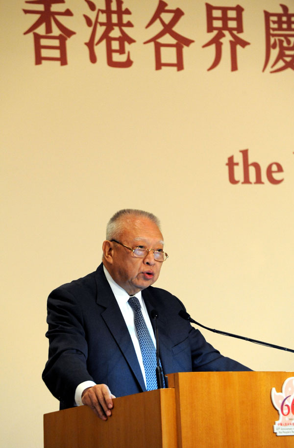 全国政协副主席董建华在致词中说,1949年10月1日新中国成立,中国人民历经千辛万苦,结束了一个世纪的战乱,终于当家做主。60年以后的今天,中华民族以崭新的姿态屹立于世界民族之林。在人类历史上,从来没有如此人口众多的一个国家,在如此短暂的时间内,取得如此巨大的成就。他说,在新中国60年的成就中,也凝聚了香港人的智慧与付出、艰辛与汗水,香港与祖国血脉相连,休戚与共。