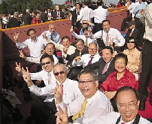 国庆日晴空万里,获邀观礼的香港嘉宾在烈日下「干煎」逾4小时,个个晒得「面红耳赤」,但无人言苦说累或中途退席,皆因有机会参与百年不遇的盛大国庆庆典,他们只觉难得,自是甘之如饴,也难掩兴奋心情。部分港区人大代表更相约40年后,在国家建国百周年时,大家聚首京城,再看阅兵式。