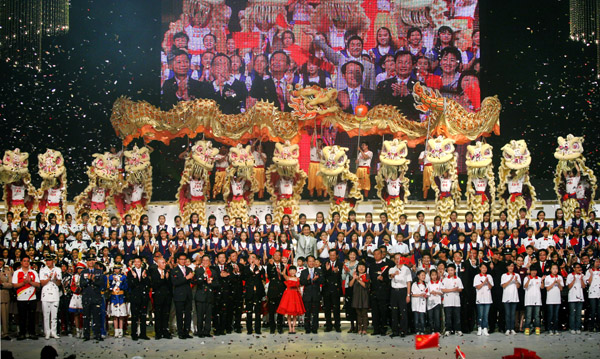 本网讯 2009年10月3日,由香港各界青少年庆祝建国60周年系列活动委员会主办、特区政府民政事务局协办的“向国旗致敬”、“万人大巡游”、“青春中华”主题晚会在西九龙和香港体育馆隆重举行,逾2万名青少年参与活动。