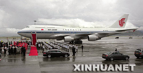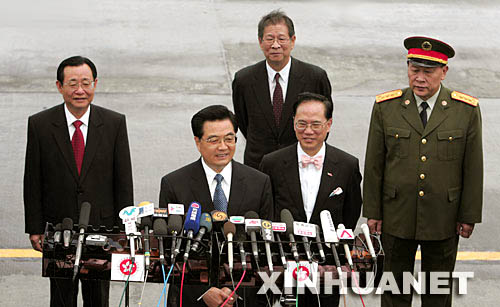 这是胡锦涛主席在机场发表抵港感言。 新华社记者周磊摄