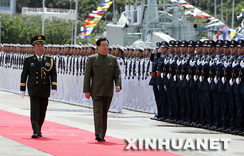 6月30日上午,中共中央总书记、国家主席、中央军委主席胡锦涛在香港昂船洲海军基地检阅中国人民解放军驻香港部队。新华社记者李学仁摄