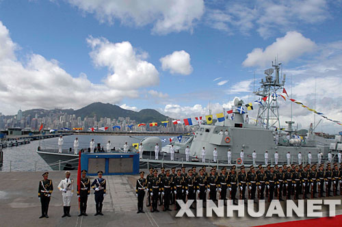 6月30日,香港昂船洲海军基地准备就绪,等待中共中央总书记、国家主席、中央军委主席胡锦涛检阅。新华社记者公磊摄