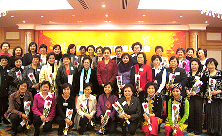 郭莉副主任、陈凤英特邀顾问与十年间获得香港特区政府颁授荣衔的部分港区妇联代表合影