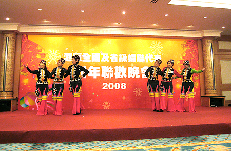 港区全国妇联及广东、福建等省级妇联历届代表110人出席晚会。1998年至2007年十年间获得特区政府大紫荆勋章,金紫荆、银紫荆、铜紫荆星章,荣誉勋章、太平绅士、行政长官小区服务奖状的港区妇联代表,以及2007年新当选和委任区议员中的港区妇联代表上台接受大家的祝贺。晚会上,代表们载歌载舞,表演了丰富多彩的文艺节目,会场气氛热烈。