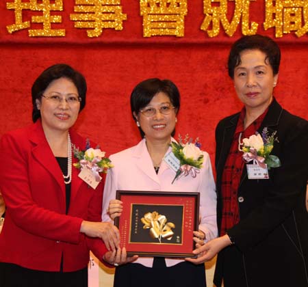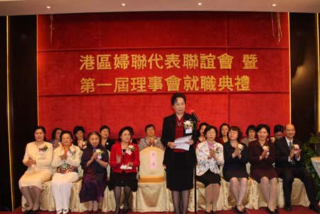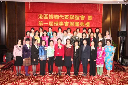 本网讯 2009年2月25日晚,应港区妇联代表联谊会的邀请,中联办副主任郭莉与行政长官夫人曾鲍笑薇、全国妇联书记处书记赵东花、全国人大常委会香港基本法委员会副主任梁爱诗、中华海外联谊会名誉副会长张永珍共同主礼了港区妇联代表联谊会成立暨第一届理事会就职典礼。
